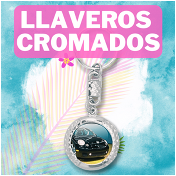 Llaveros Acabado Cromo con logo impreso a todo color resinado efecto 3D